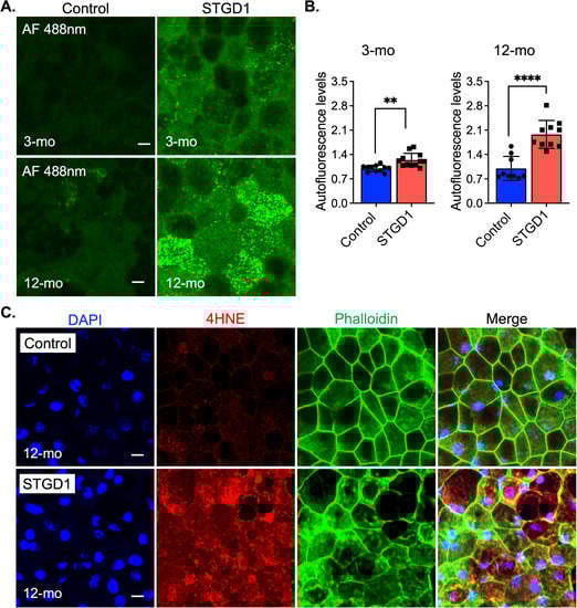 3.5. Autofluorescent Material Accumulates in STGD1 RPE Cells