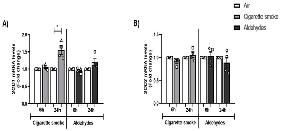 3.3. CS Exposure Affects Inflammatory Protein Production and Antioxidant Gene Expression