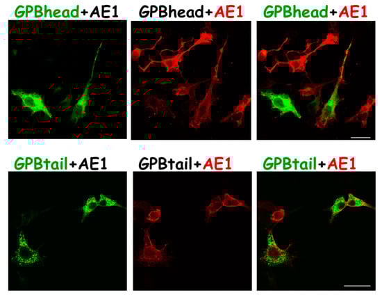 3.3. Substantial Localization of GPB in the ER and Golgi Apparatus Could Be Redirected to the Plasma Membrane upon AE1 Coexpression