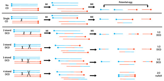 - Hughes, S.E.; Miller, D.E.; Miller, A.L.; Hawley, R.S. Female Meiosis: Synapsis, Recombination, and Segregation in Drosophila Melanogaster. Genetics 2018, 208, 875–908. [Google Scholar] [CrossRef]