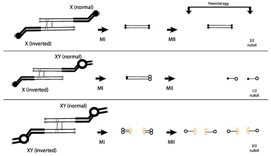 - Beadle, G.W.; Sturtevant, A.H. X Chromosome Inversions and Meiosis in Drosophila Melanogaster. Proc. Natl. Acad. Sci. USA 1935, 21, 384–390. [Google Scholar] [CrossRef]