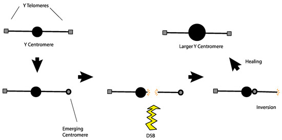- Ault, J.G.; Lyttle, T.W. A Transmissible Dicentric Chromosome in Drosophila Melanogaster. Chromosoma 1988, 97, 71–79. [Google Scholar] [CrossRef]