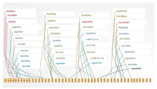 - Richards, S.; Aziz, N.; Bale, S.; Bick, D.; Das, S.; Gastier-Foster, J.; Grody, W.W.; Hegde, M.; Lyon, E.; Spector, E.; et al. Standards and guidelines for the interpretation of sequence variants: A joint consensus recommendation of the American College of Medical Genetics and Genomics and the Association for Molecular Pathology. Genet. Med. 2015, 17, 405–424. [Google Scholar] [CrossRef]