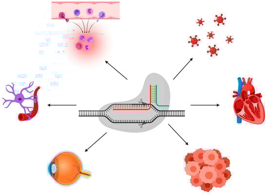 The manipulation of DNA or RNA for the treatment or prevention of human diseases is known as gene therapy. By disrupting endogenous disease-causing genes, correcting disease-causing mutations, or introducing new protective genes, precise genome editing holds the potential to permanently cure a wide variety of life-threatening diseases. Various clinical trials were launched to treat blood disorders [], cancers [,,], and other currently ongoing trials to treat eye diseases, chronic infections, and rare protein-folding diseases. For gene therapy applications, CRISPR-Cas9 provides a unique, highly effective genome-editing technique.