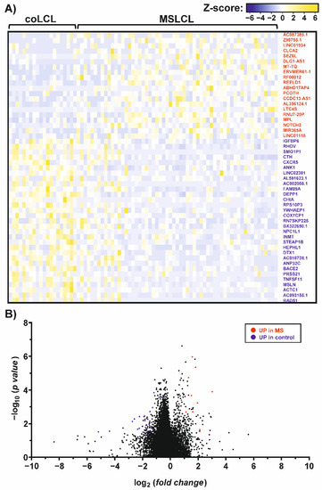3.3. Differential Expression Pattern in Human Transcriptome in LCL from MS-Derived Samples and Controls