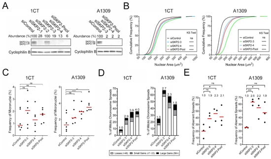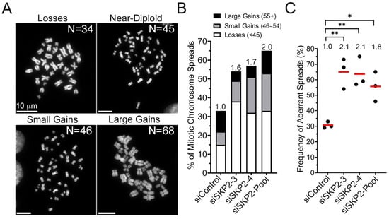 3.4. SKP2 Is Required to Maintain Chromosome Stability in HCT116 Cells
