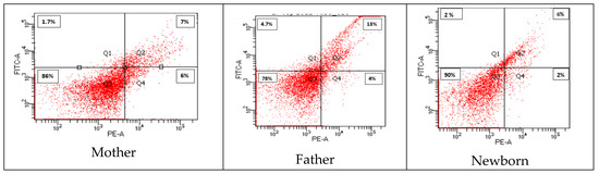 Comparison of immune markers (CD57, KLRG1) among mother, father, and newborn.