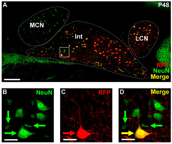 3.1. Proportion of CN Neurons Labelled RFP+ in Ntsr1-Cre/AI14 Mice