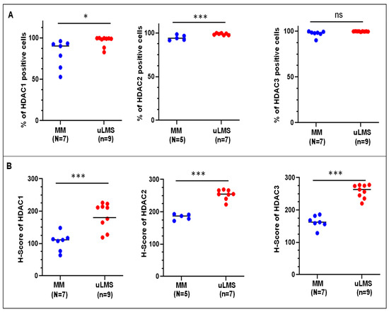 3.1. The Expression Levels of Class I HDACs Members Are Upregulated in uLMS Tissues Compared to Adjacent Myometrium from Women with uLMS