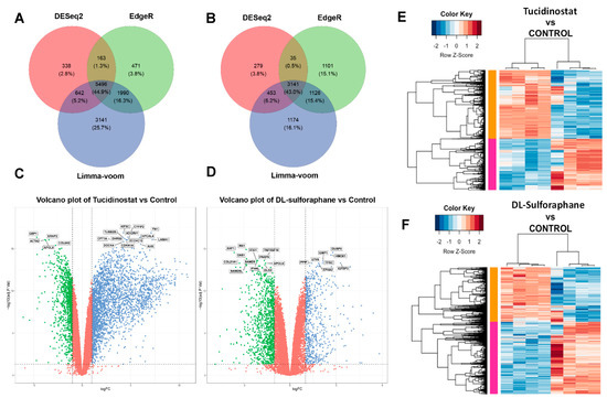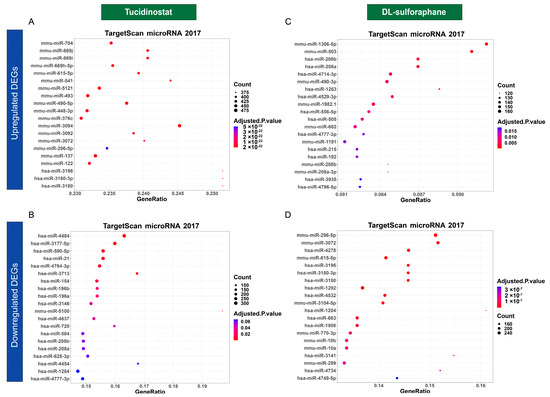 3.4.5. Tucidinostat and DL-Sulforaphane Altered the Gene Expression Correlating to the miRNA Regulation