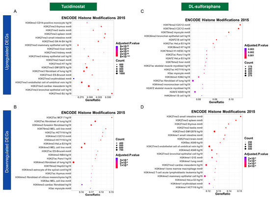 3.4.3. Tucidinostat and DL-Sulforaphane Altered the Gene Expression Correlating to Histone Modifications