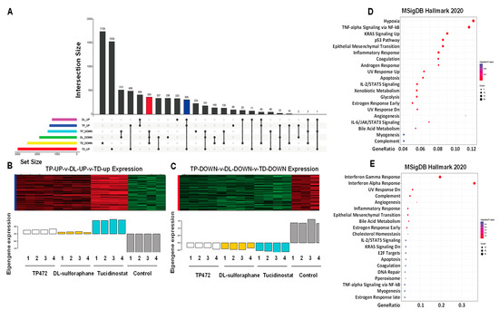 3.4.1. Pathway Analysis of DEGs upon Tucidinostat and DL-Sulforaphane Treatment