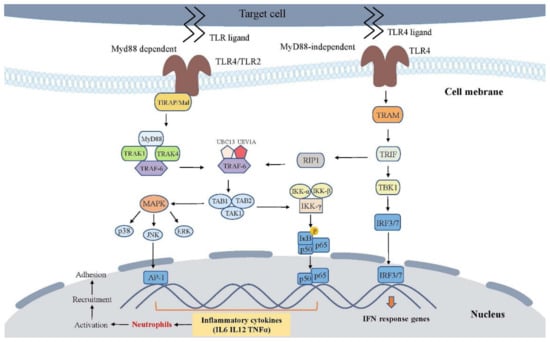 - Aderem, A.; Ulevitch, R.J. Toll-like receptors in the induction of the innate immune response. Nature 2000, 406, 782–787. [Google Scholar] [CrossRef]