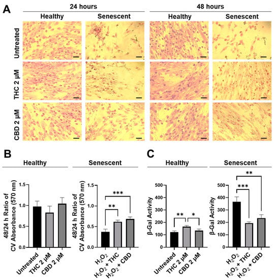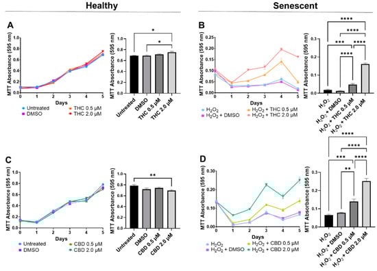3.2. Phytocannabinoids Enhance Cellular Viability in SIPS Fibroblasts