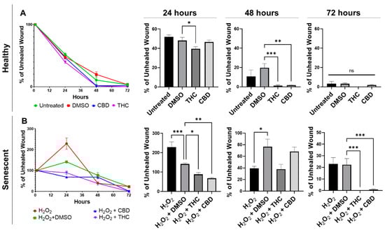- THC and CBD stimulated fibroblasts’ ability to close damaged wounds, while THC induced wound healing better than common nutrient signaling regulators,