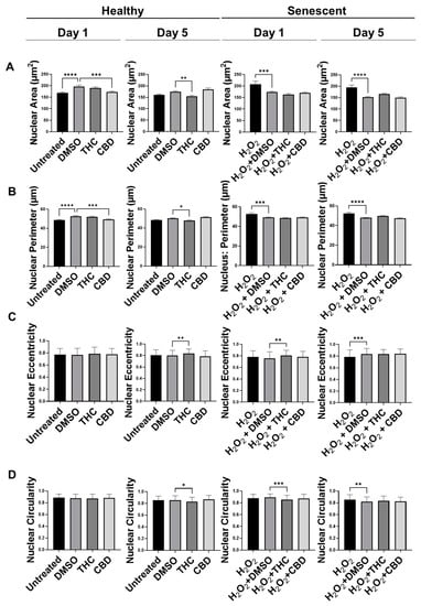 3.4. Phytocannabinoids Alter Nuclear Morphology of Human Dermal Fibroblasts
