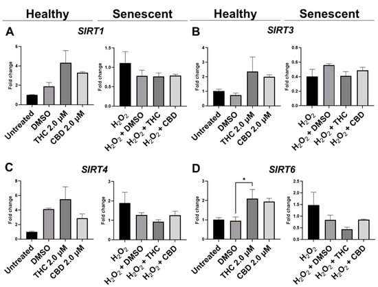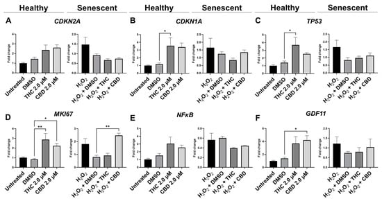 - Gerasymchuk, M.; Robinson, G.I.; Kovalchuk, O.; Kovalchuk, I. The Effects of Nutrient Signaling Regulators in Combination with Phytocannabinoids on the Senescence-Associated Phenotype in Human Dermal Fibroblasts. Int. J. Mol. Sci. 2022, 23, 8804. [Google Scholar] [CrossRef] [PubMed]