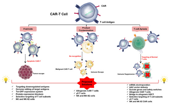 - Sun, S.; Hao, H.; Yang, G.; Zhang, Y.; Fu, Y. Immunotherapy with CAR-Modified T Cells: Toxicities and Overcoming Strategies. J. Immunol. Res. 2018, 2018, 1–10. [Google Scholar] [CrossRef]