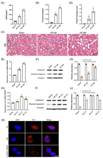 3.1. I/R-Induced Expression of lncRNA 148400 in BUMPT Cells and Mice Kidneys