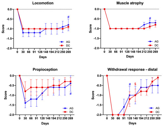 - Roballo, K.C.S.; Burns, D.T.; Ghnenis, A.B.; Osimanjiang, W.; Bushman, J.S. Long-Term Neural Regeneration Following Injury to the Peroneal Branch of the Sciatic Nerve in Sheep. Eur. J. Neurosci. 2020, 52, 4385–4394. [Google Scholar] [CrossRef] [PubMed]