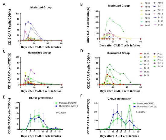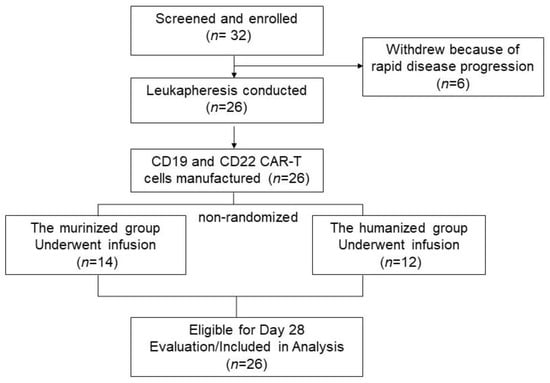 Huang, L.; Li, J.; Yang, J.; Zhang, X.; Zhang, M.; He, J.; Zhang, G.; Li, W.; Wang, H.; Li, J.; et al. Safety and Efficacy of Humanized Versus Murinized CD19 and CD22 CAR T-Cell Cocktail Therapy for Refractory/Relapsed B-Cell Lymphoma. Cells 2022, 11, 4085. https://doi.org/10.3390/cells11244085