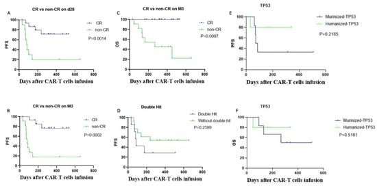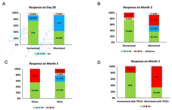 3.3. Patients Who Received Humanized CAR T-Cells Achieved a Higher CR Than Those Treated with the Murinized CAR-T, Even among TP53 Mutation-Positive Patients