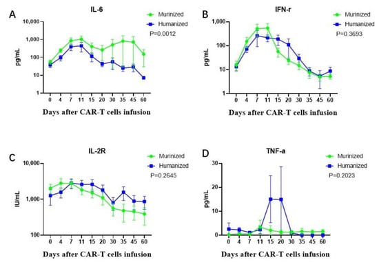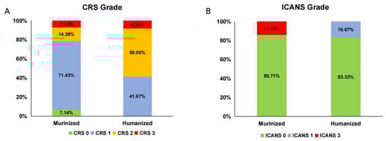 3.6. High-Grade CRS Was Associated with Higher Levels of Cytokines in Vivo