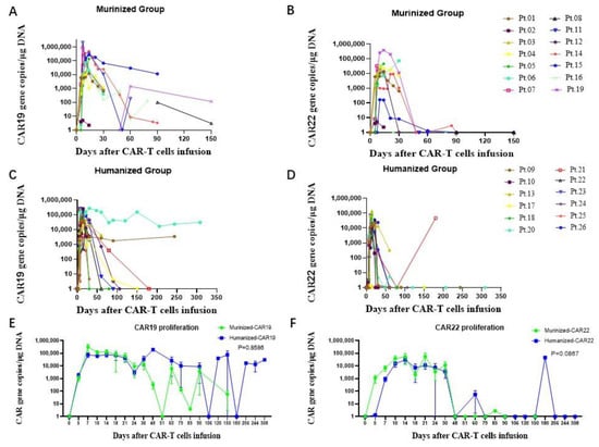 - Zhao, Y.; Liu, Z.F.; Wang, X.; Wu, H.; Zhang, J.; Yang, J.; Zhang, F.; Liu, L.; Long, J.; Lu, P.; et al. Treatment with humanized selective CD19CAR-T Cells shows efcacy in highly treated B-ALL Patients who have relapsed after receiving murine-based CD19CAR-T therapies. Clin. Cancer Res. 2019, 25, 5595–5607. [Google Scholar] [CrossRef]