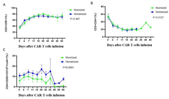 - Pan, Y.; Wang, H.; An, F.; Wu, F.; Tao, Q.; Li, Y.; Ruan, Y.; Zhai, Z. CD4+CD25+CD127low regulatory T cells associated with the effect of CD19 CAR-T therapy for relapsed/refractory B-cell acute lymphoblastic leukemia. Int. Immunopharmacol. 2021, 96, 107742. [Google Scholar] [CrossRef] [PubMed]