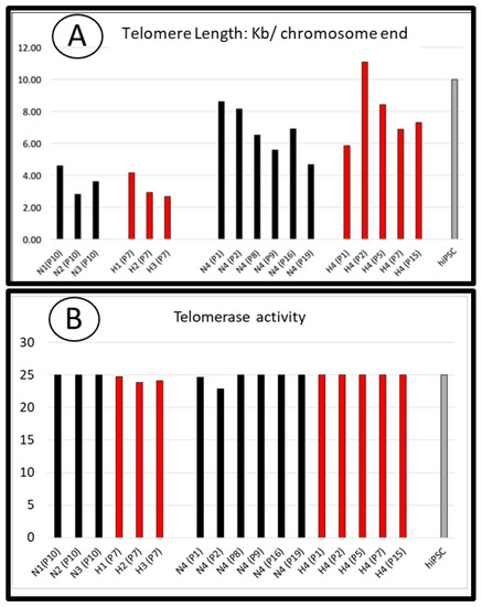 2.5. Telomere Length and Telomerase Activity