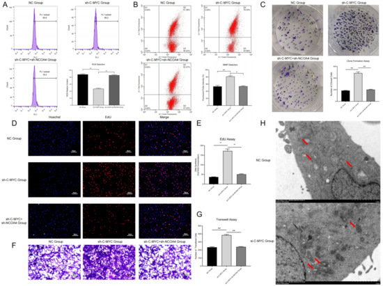 3.4. C-MYC Inhibited Mitophagy and Promoted Malignant Phenotype in Ovarian Cancer Cells through the NCOA4 Axis
