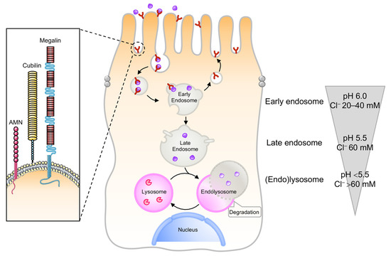 - Christensen, E.I.; Birn, H. Megalin and cubilin: Multifunctional endocytic receptors. Nat. Rev. Mol. Cell Biol. 2002, 3, 256–266. [Google Scholar] [CrossRef]