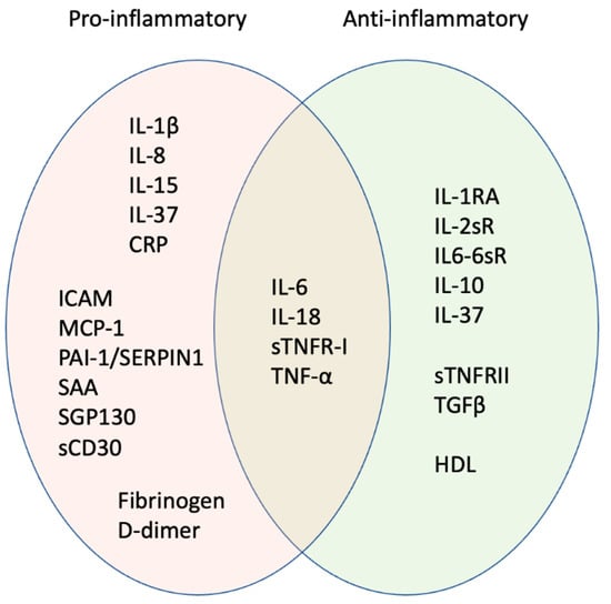 IL-18 and TNF-α as examples of factors with both pro- and anti-inflammatory activity identified in several large cohort studies.