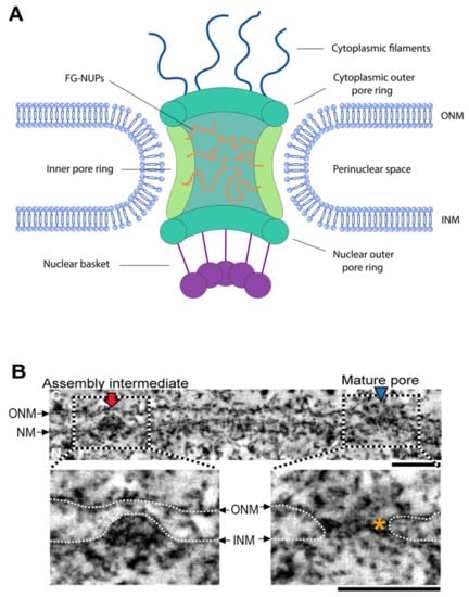 - Weberruss, M.; Antonin, W. Perforating the Nuclear Boundary—How Nuclear Pore Complexes Assemble. J. Cell Sci. 2016, 129, 4439–4447. [Google Scholar] [CrossRef]