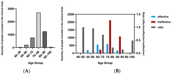 (A) The age distribution of all participants in clinical trials. (B) Comparison of age groups in clinical trial studies.