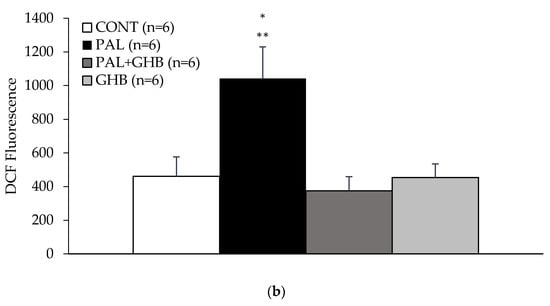 Figure 2a,b illustrate the significant increase in ROS generated in mouse islets treated with palmitate and the absence of this effect in islets concomitantly treated with GHB.