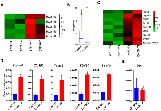 Chicago/Turabian StyleTian, Qing, and Li-quan Zhou. 2022. "Lactate Activates Germline and Cleavage Embryo Genes in Mouse Embryonic Stem Cells" Cells 11, no. 3: 548. https://doi.org/10.3390/cells11030548