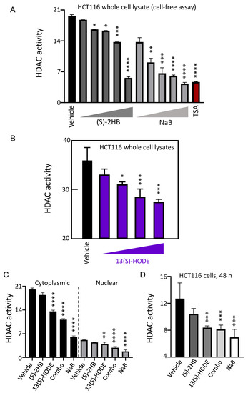3.3. Butanoate Metabolites and 13(S)–HODE Inhibited HDAC Activity