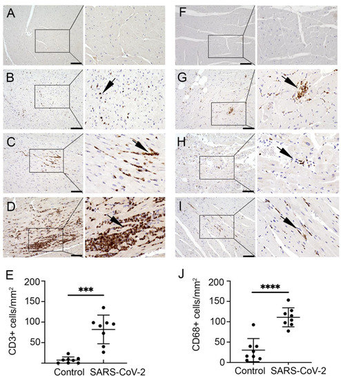 3.4. Immunostaining with SARS-CoV-2 Specific Antibody Shows the Presence of Viral Protein in the Heart