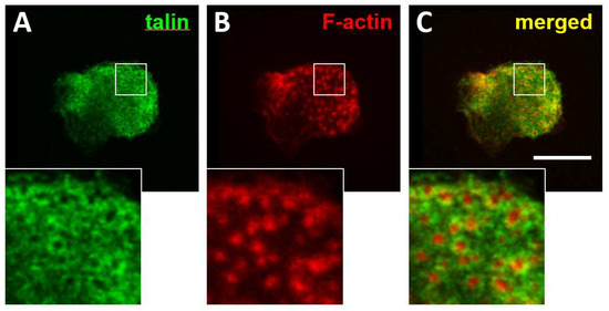 - van den Dries, K.; Nahidiazar, L.; Slotman, J.A.; Meddens, M.B.M.; Pandzic, E.; Joosten, B.; Ansems, M.; Schouwstra, J.; Meijer, A.; Steen, R.; et al. Modular actin nano-architecture enables podosome protrusion and mechanosensing. Nat. Commun. 2019, 10, 5171. [Google Scholar] [CrossRef]
