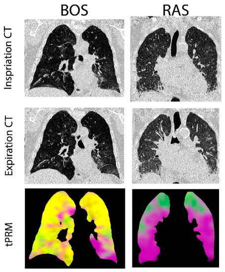 - Verleden, S.E.; Vos, R.; Vandermeulen, E.; Ruttens, D.; Bellon, H.; Heigl, T.; Van Raemdonck, D.E.; Verleden, G.M.; Lama, V.; Ross, B.D.; et al. Parametric Response Mapping of Bronchiolitis Obliterans Syndrome Progression After Lung Transplantation. Am. J. Transplant. 2016, 16, 3262–3269. [Google Scholar] [CrossRef] [Green Version]