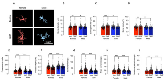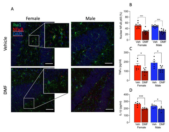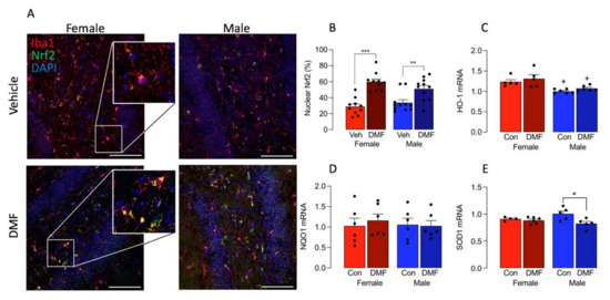 3.1. DMF Differentially Affects Markers of Microglial Activation in A Sex-Dependent Manner