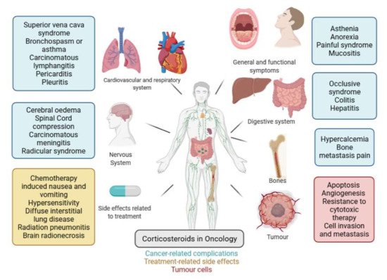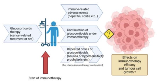 Clearly, corticosteroids have become well established in the management of patients with cancer at several levels although primarily in the management of cancer-related complications or treatment side effects. Nonetheless, it should be underlined that the use of a number of therapeutic approaches using GCs [] lack a solid scientific rationale even though the side effects of GCs treatment are well known. This is all the more important to keep in mind since the advent of immunotherapy, which is quickly becoming a leading component of therapy in the majority of cancers.