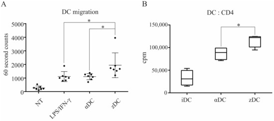 3.3. Migratory and Allo-Stimulatory Capacities of zDCs Are Superior to αDCs