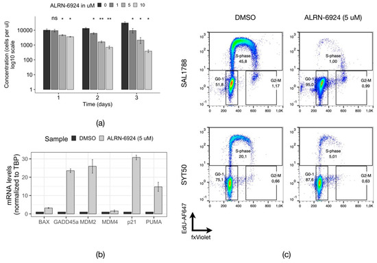 2.15. ALRN-6924 Treatment and Cell Cycle Analysis