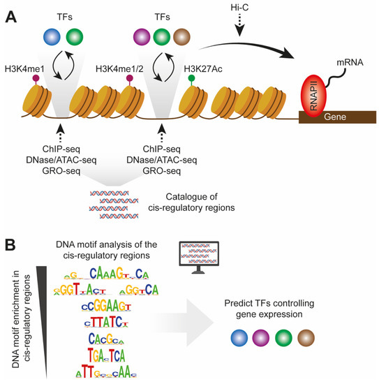 - Heinz, S.; Romanoski, C.E.; Benner, C.; Glass, C.K. The selection and function of cell type-specific enhancers. Nat. Rev. Mol. Cell Biol. 2015, 16, 144–154. [Google Scholar] [CrossRef] [Green Version]
