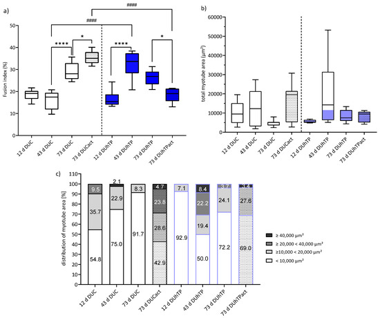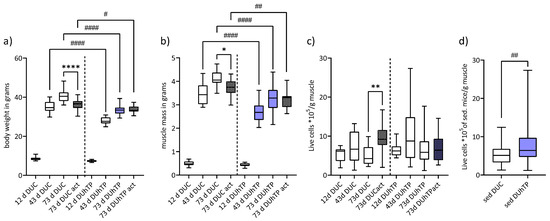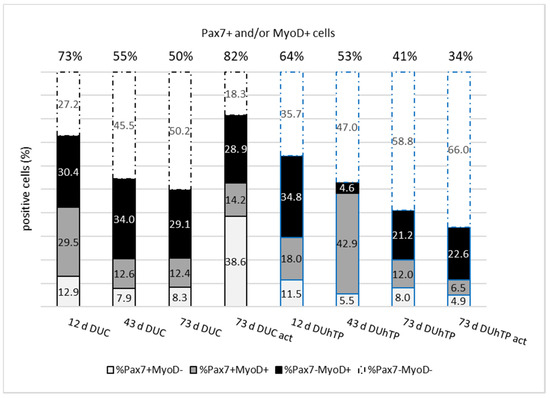 3.3. Pax7 and MyoD Expression in MPC/SATC Cultures from Male DUC and DUhTP Mice