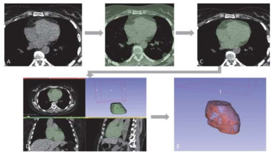 - Ding, X.; Terzopoulos, D.; Diaz-Zamudio, M.; Berman, D.S.; Slomka, P.J.; Dey, D. Automated pericardium delineation and epicardial fat volume quantification from noncontrast CT: Automated epicardial fat volume quantification from noncontrast CT. Med. Phys. 2015, 42, 5015–5026. [Google Scholar] [CrossRef]