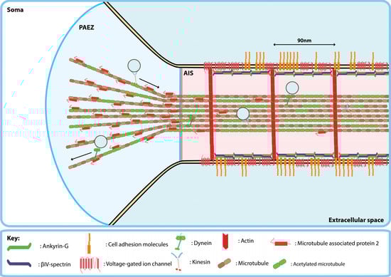- Song, A.-H.; Wang, D.; Chen, G.; Li, Y.; Luo, J.; Duan, S.; Poo, M.-M. A Selective Filter for Cytoplasmic Transport at the Axon Initial Segment. Cell 2009, 136, 1148–1160. [Google Scholar] [CrossRef]