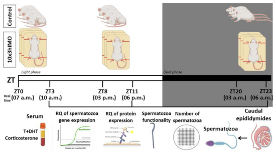 52]. Moreover, the existence and the role of the clock genes in spermatozoa are not clear and should be targets of future investigation. However, there is published evidence related to the effect of repeated stress at ZT3 from others and our group, but this has already been discussed in our previous publications [